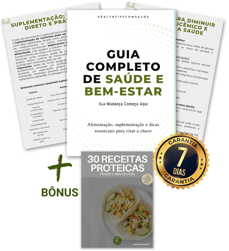 O guia traz uma combinação de teoria e práticas aplicáveis, incluindo listas de alimentos, suplementos e dicas de refeições saudáveis, além de um e-book bônus com 30 receitas protéicas e sem glúten, que irá como brinde na sua compra.
